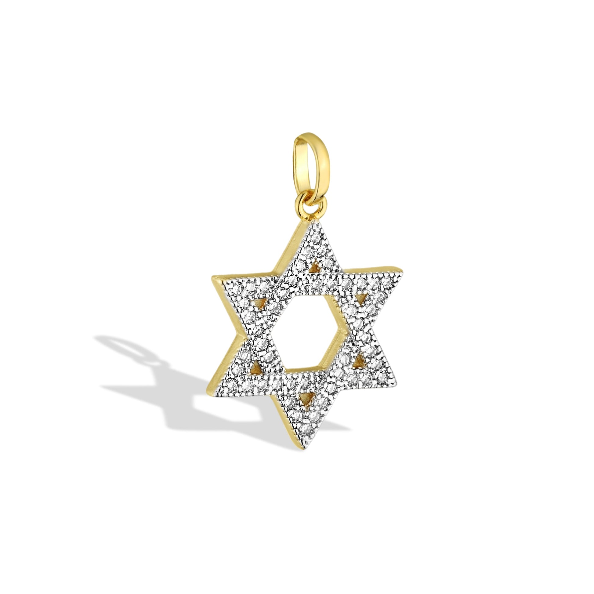 The Star of David I Pendant from our Faith Collection is a beautiful expression of cultural pride and spiritual significance. Crafted from an 18k gold-filled metal on a palladium base, this piece features a meticulously designed Star of David pendant. The star is adorned with shimmering cubic zirconia, adding a touch of brilliance and elegance to its timeless design. Suspended from a delicate gold chain, the pendant sits gracefully on the neckline, making it perfect for both everyday wear and special occasions. Celebrate heritage and style with the Star of David I Pendant — a radiant symbol of faith and identity.